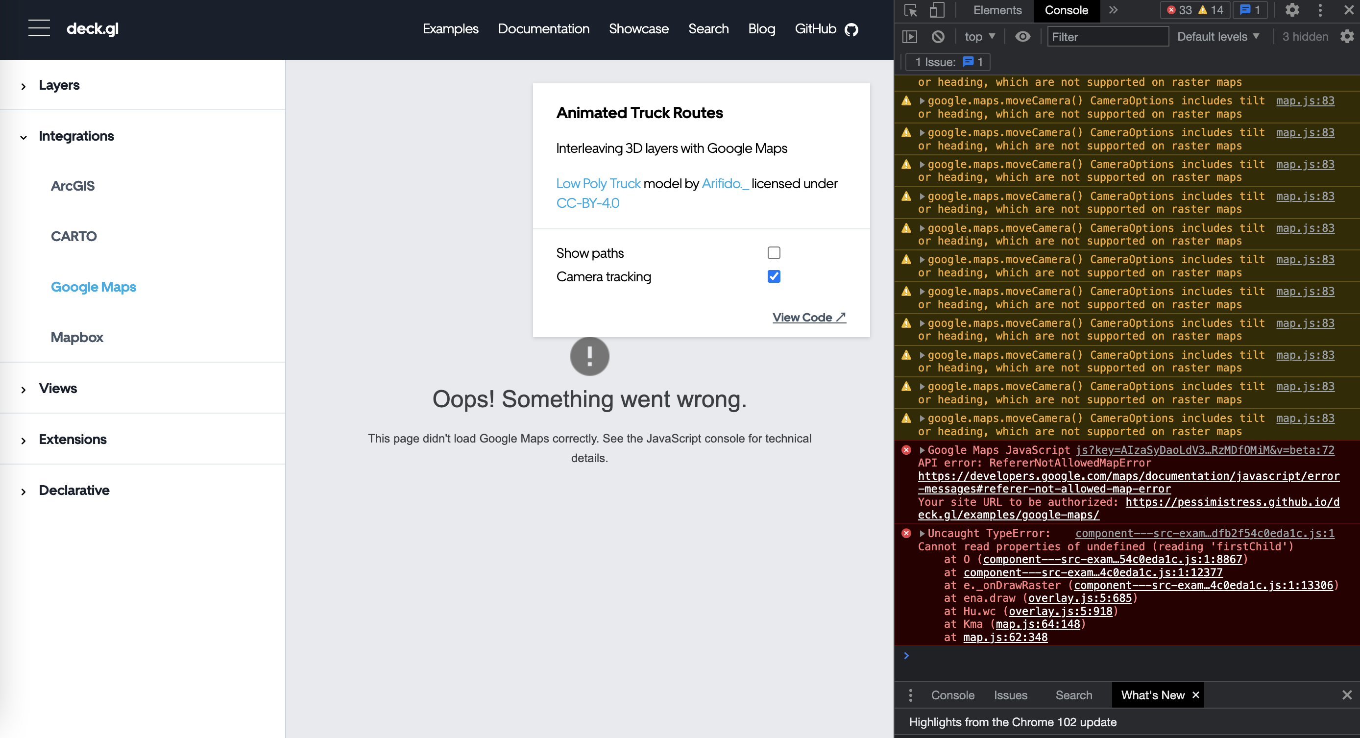 Bug] Website Examples: Integrations Google Maps is not working