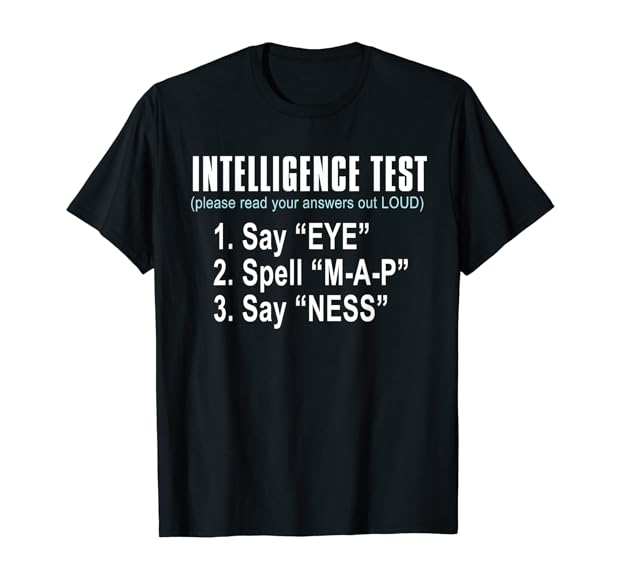 Amazon.com: Intelligence Test Say Eye M A P Ness funny dad joke T