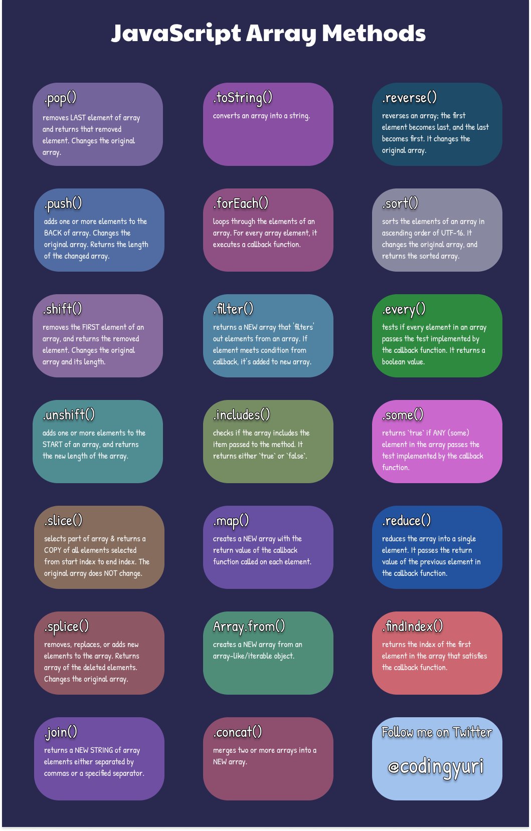 Alida School ????????โ????????????โ???? on X: “JavaScript top 20 array methods